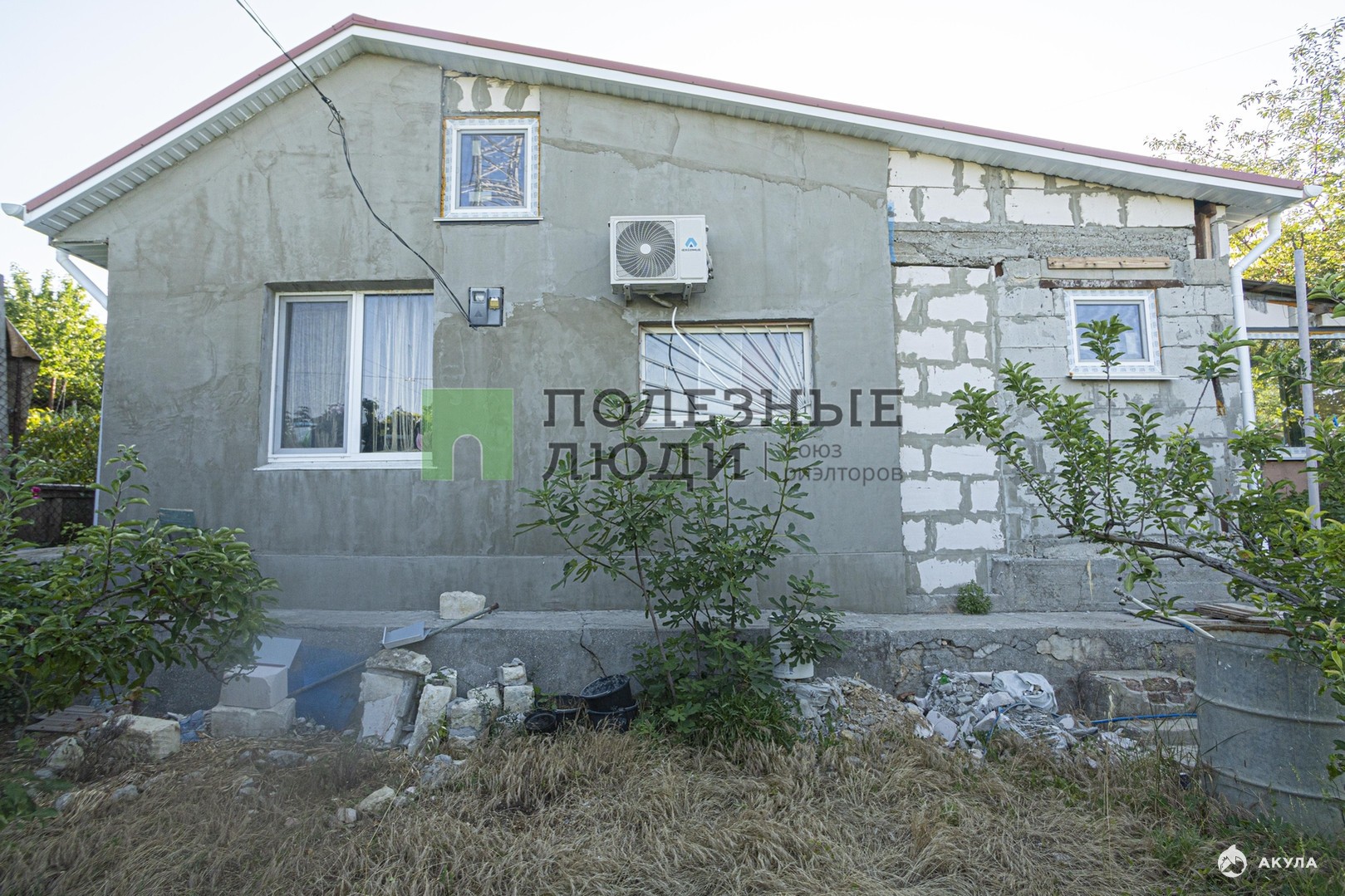 Газоблок 300 мм. Утепление пенопласт 50 мм. Вода и электричество заведены в дом.
