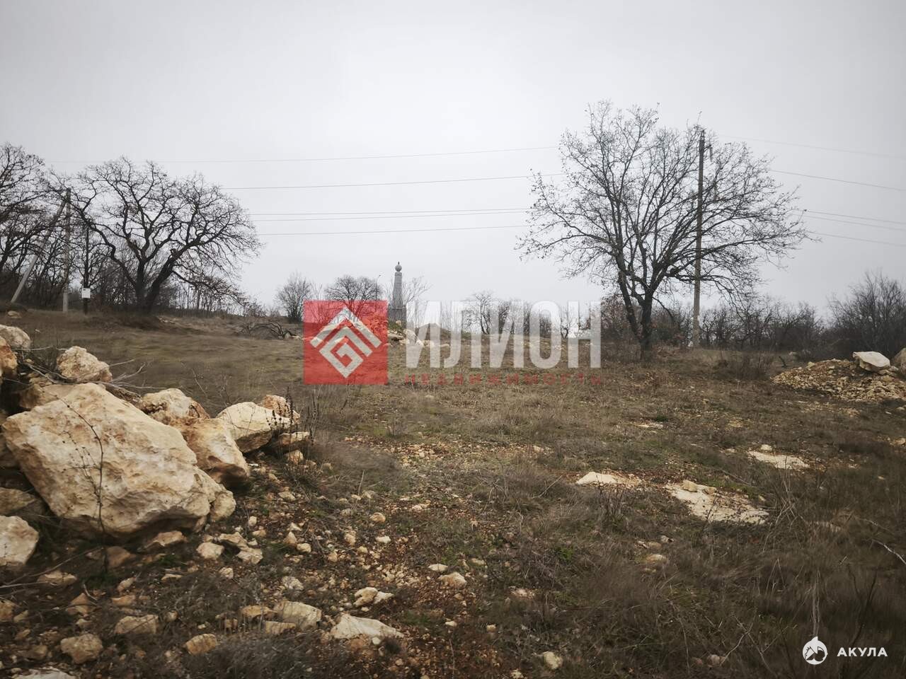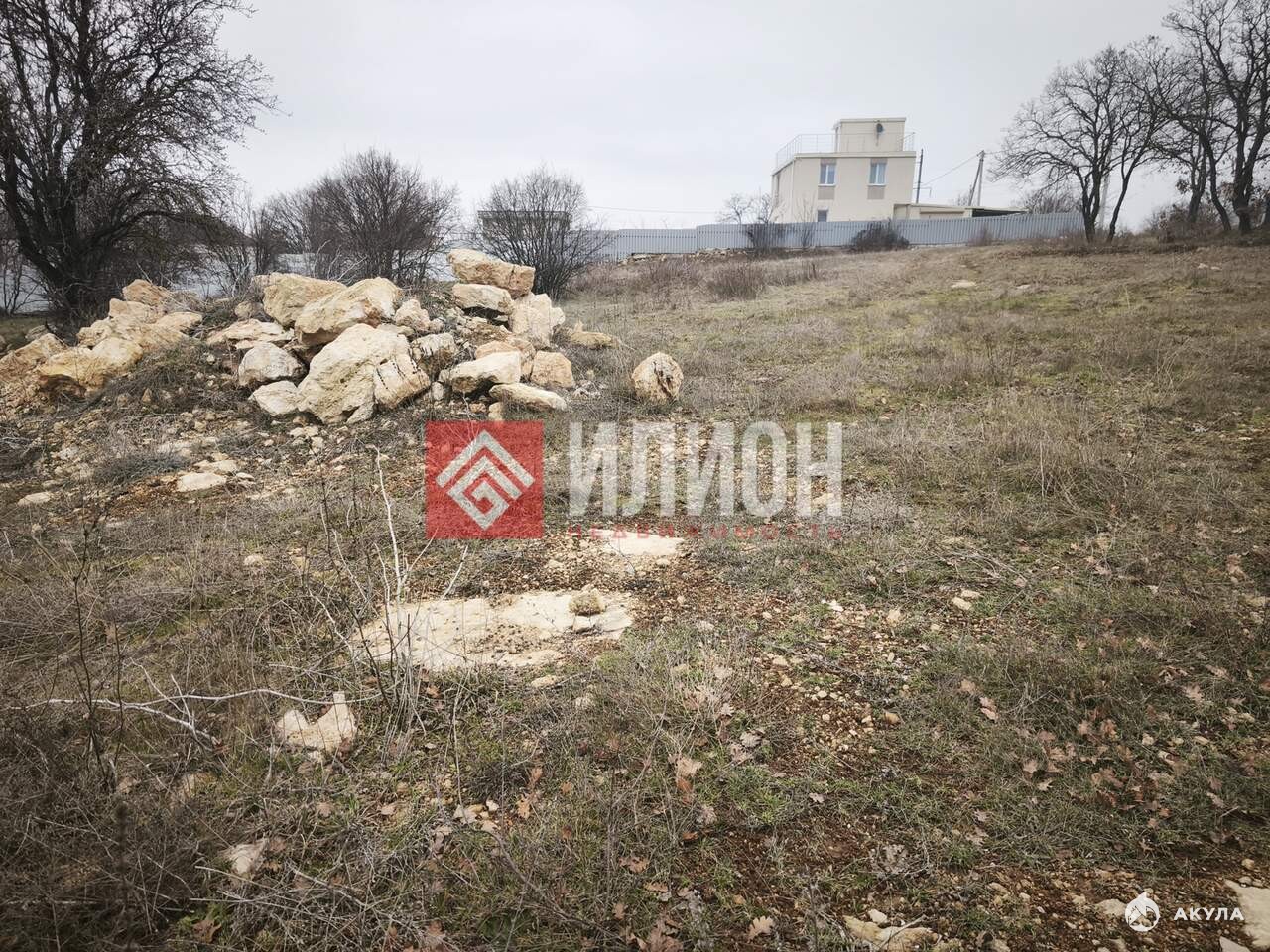 С участка видно немного море. Рядом видны Крымские сосны, хвойный лес для прогулок.