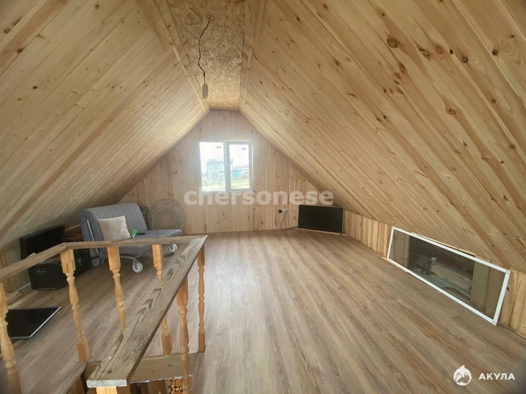Внутри уютная светлая просторная кухня-столовая. В доме есть санузел, аккуратно размещённый в жилой части. Так же есть небольшая банька, где можно снять усталость после тяжелой трудовой недели. Имеется второй мансардный этаж, где пространство позволяет легко адаптировать интерьер под свои предпочтения, создать зону отдыха и рабочий уголок. Две комнаты обеспечивают приватность зонам сна и дневной активности.