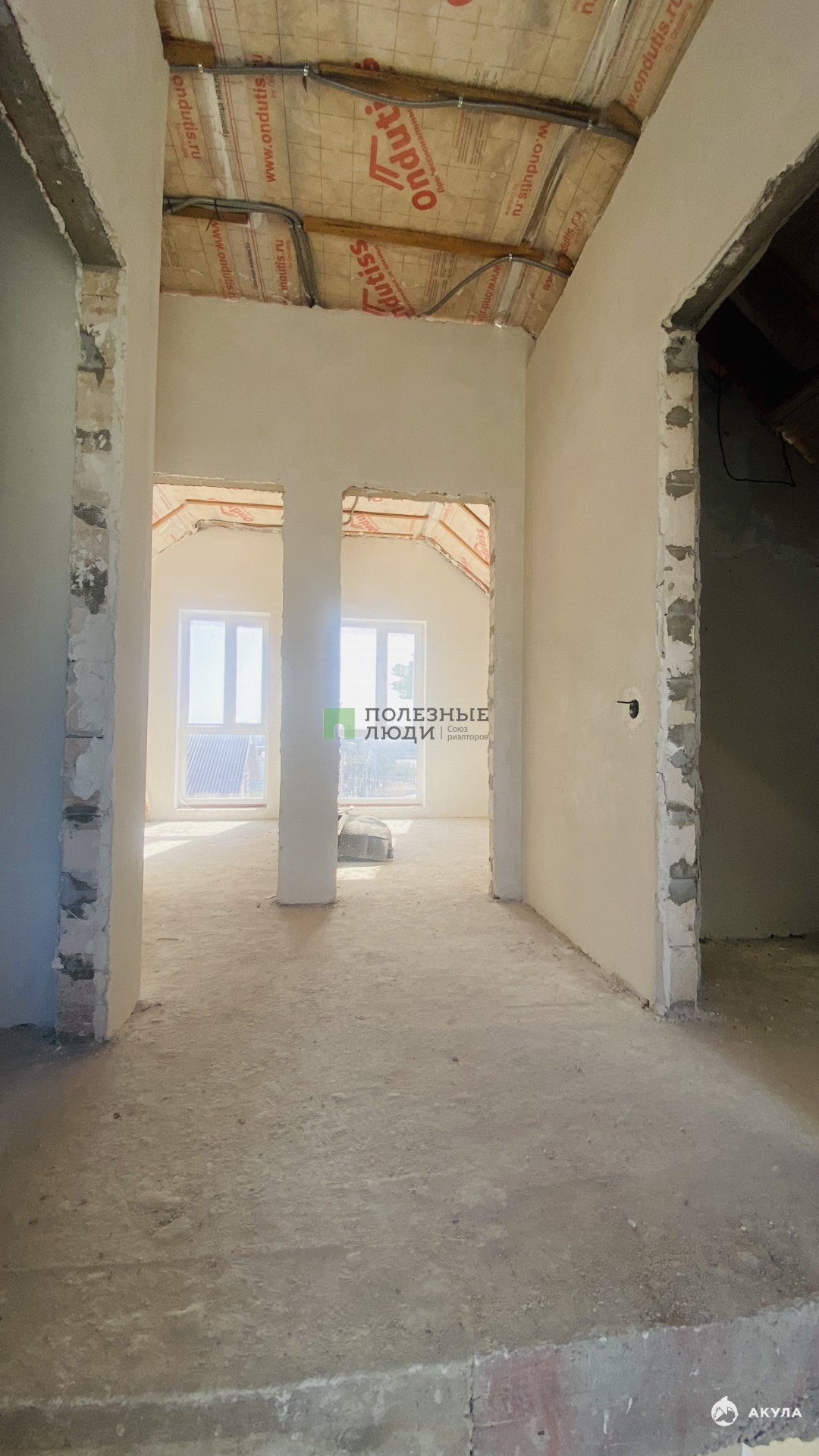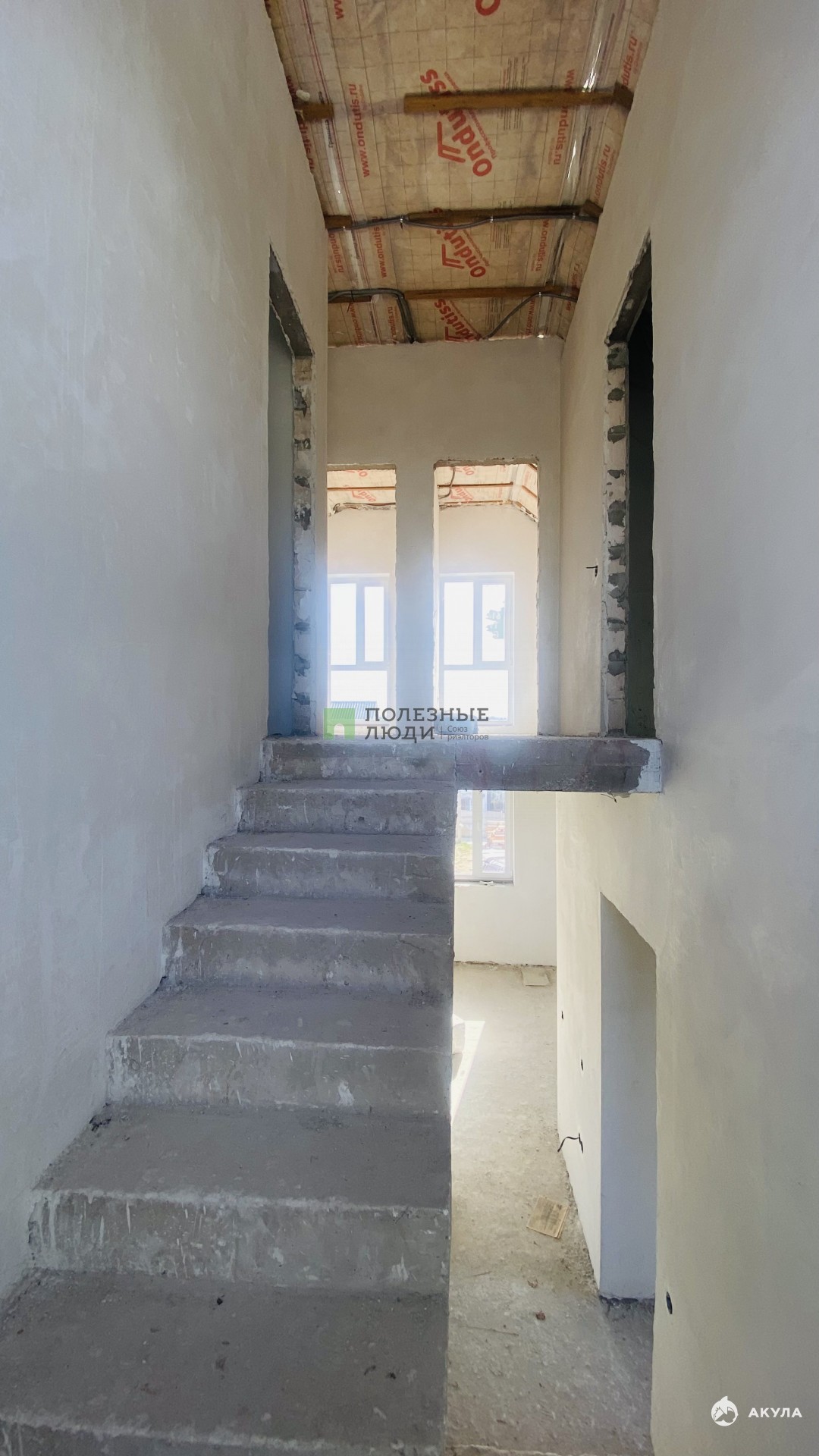 Кровля - мягкая черепица, утепление минеральная вата 200мм. Межэтажное перекрытие – монолитная плита, бетонная лестница.