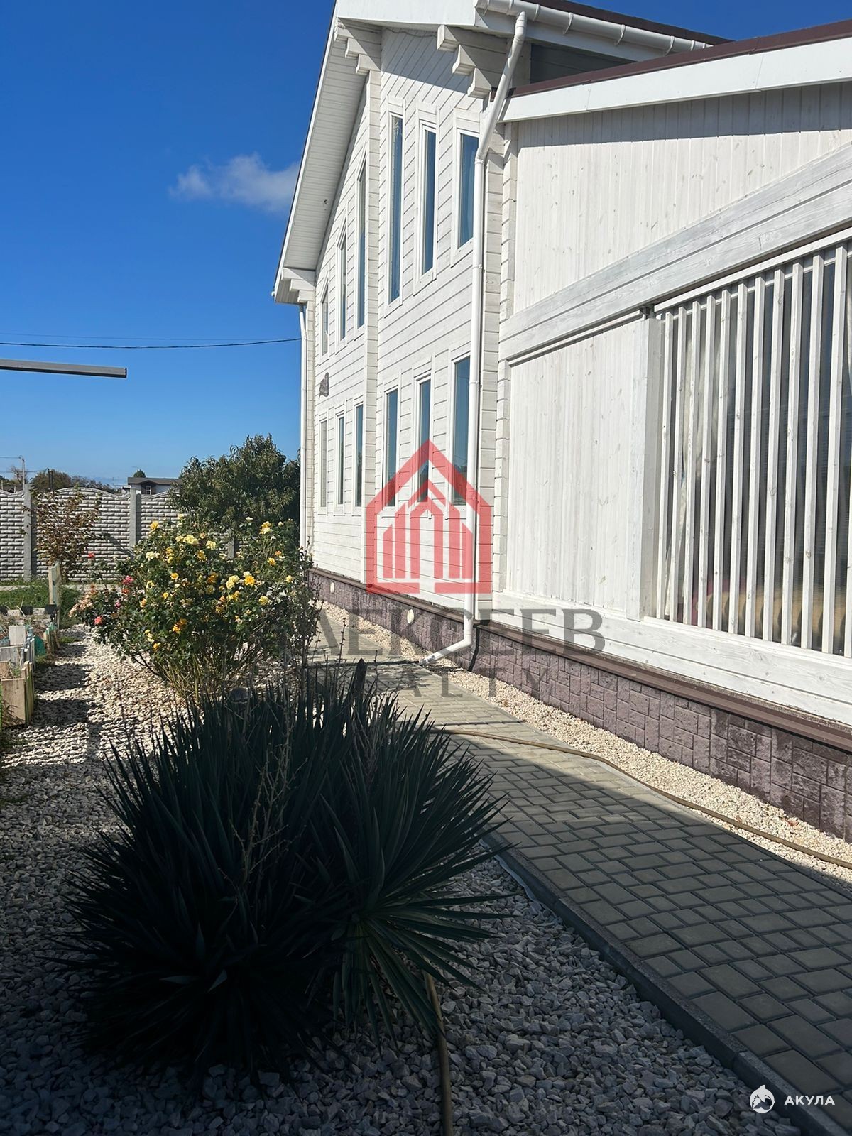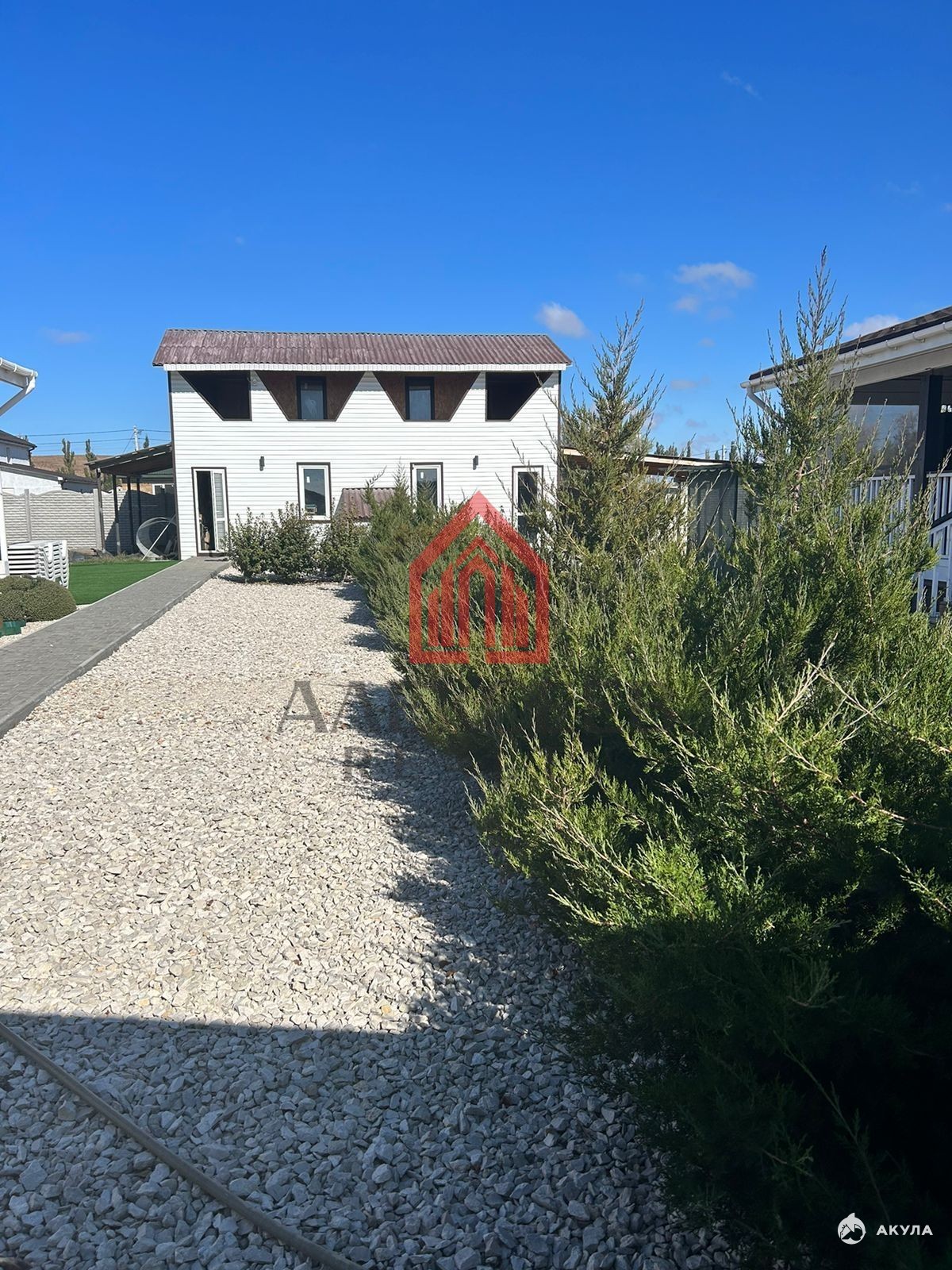 На участке сделана детская площадка с покрытием из искусственной травы, большой каркасный бассейн, качели и гамак, уличная мебель, хоз постройка, декоративные насаждения, около 20 плодовых деревьев, большое парковочное место под две машины, автоматические откатные ворота, калитка и дорожки вымощенные плиткой.