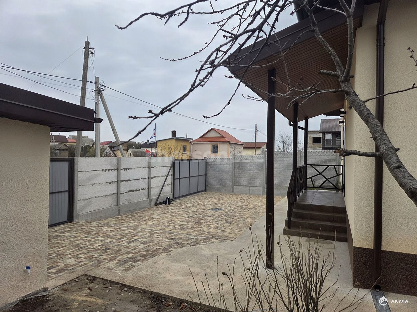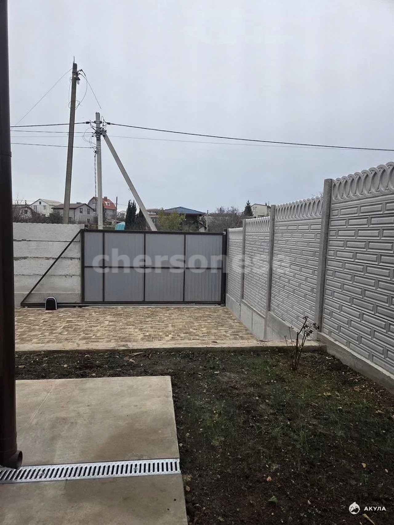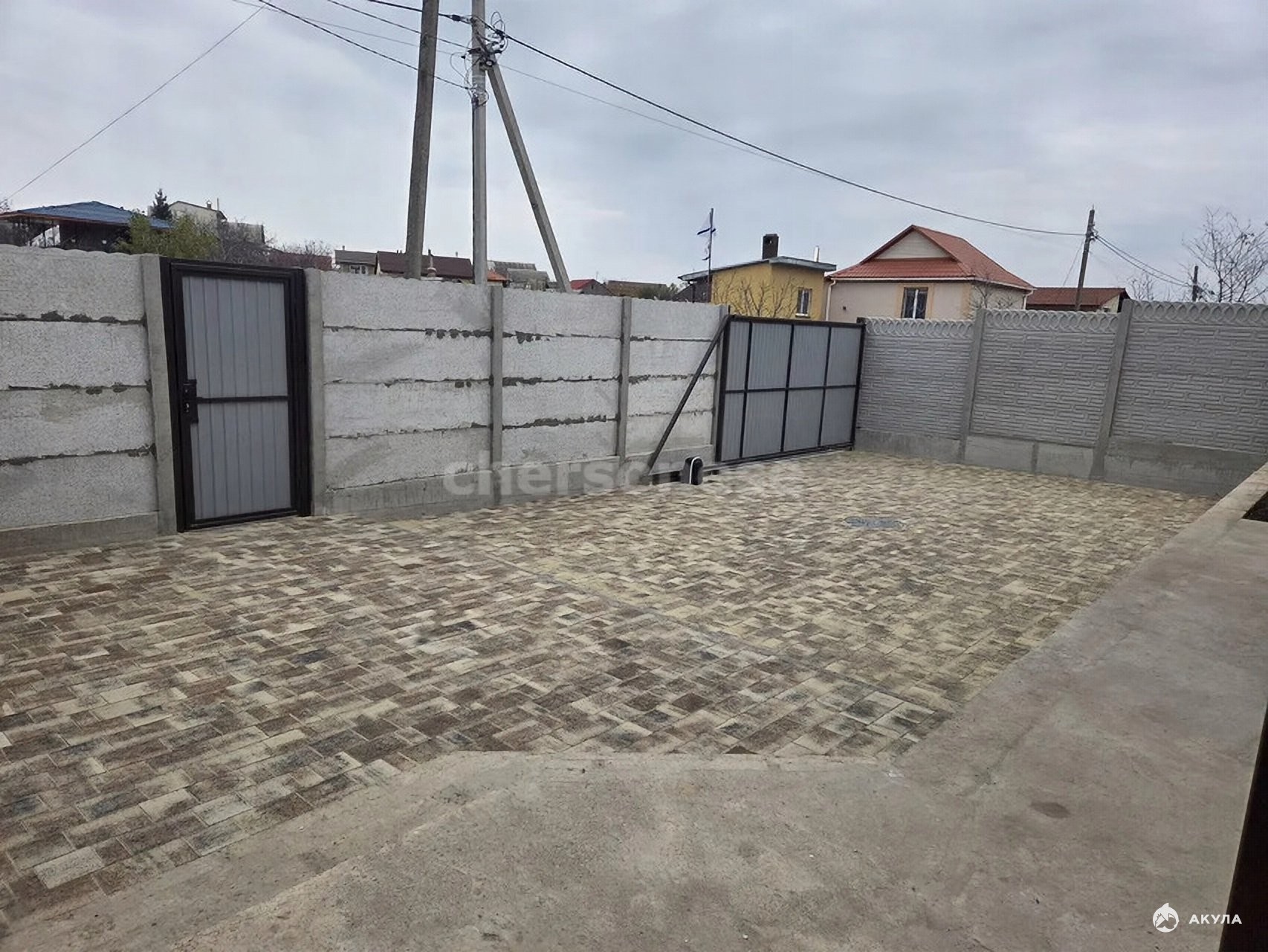 Электричество от новой КТП. Центральное водоснобжение. Участок полностью огорожен, установлены автоматические ворота, двор оснащен тротуарной плиткой.