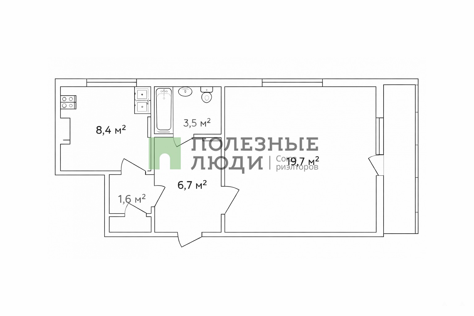 - 19.7 м²