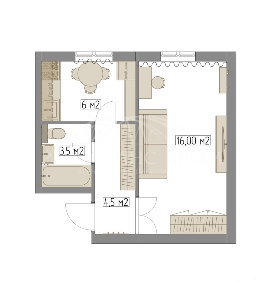 • Кухня — 6 м²• Высота потолков 2, 5 м