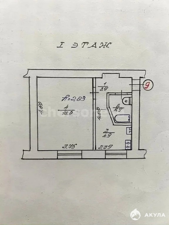 Площадь – 29, 7 кв.м, жилая – 18 кв.м, кухня – 4, 9 кв.м. Высокие потолки 2, 8 м придают ощущение простора даже в небольшой квартире. Расположена на 1 этаже 2-этажного дома 1957 года постройки.