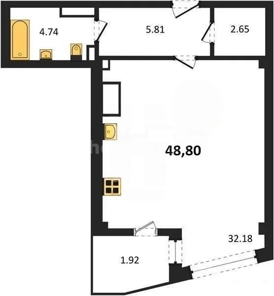 В продаже имеются студио-апартаменты с отделкой в жилом комплексе "Garden" премиум-класса. Общая площадь составляет 48, 8 кв.м., при этом жилая зона с кухней занимает 32, 18 кв.м. Все окна выходят на одну сторону. В квартире есть лоджия и санузел. Высота потолков достигает 2.7 м.