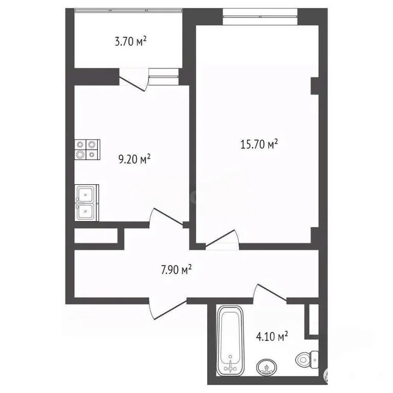Общая площадь квартиры 37 кв.м, из которых 20 кв.м — жилая, кухня 10 кв.м.
