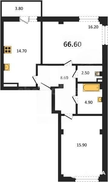 В продаже имеются квартиры в жилом комплексе "Доброгород" премиум-класса. Общая площадь составляет 66, 6 кв.м., при этом кухня - 14, 7 кв.м. Высота потолков достигает 2, 8 м.