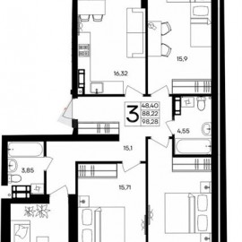 В продаже просторная трехкомнатная квартира общей площадью 84 квадратных метра с удобной и практичной планировкой. Планировка квартиры: - три изолированные комнаты (выход на лоджию из спальни); - кухня-столовая правильной квадратной формы с выходом на лоджию; - большая...
