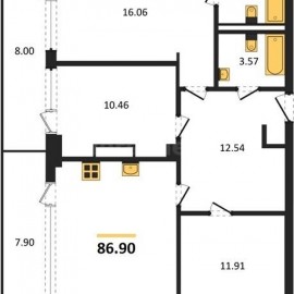 Лот №2896. Лучший морской район города Севастополя! Продается уютная квартира удобной планировки: · Прихожая · Кухня-столовая · Спальня · Детская · Два санузла (полноценная...