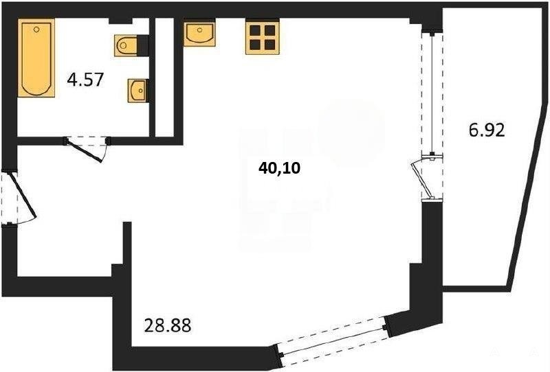 В продаже имеются студио-апартаменты с отделкой в жилом комплексе "Garden" премиум-класса. Общая площадь составляет 40, 1 кв.м., при этом жилая зона с кухней занимает 28, 88 кв.м. Все окна выходят на одну сторону. В квартире есть лоджия и санузел. Высота потолков достигает 2.7 м.