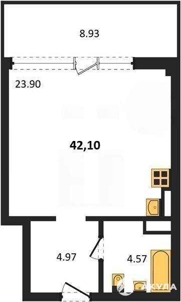 В продаже имеются студио-апартаменты с отделкой в жилом комплексе "Garden" премиум-класса. Общая площадь составляет 42, 1 кв.м., при этом жилая зона с кухней занимает 23, 9 кв.м. Все окна выходят на одну сторону. В квартире есть лоджия и санузел. Высота потолков достигает 2.7 м.