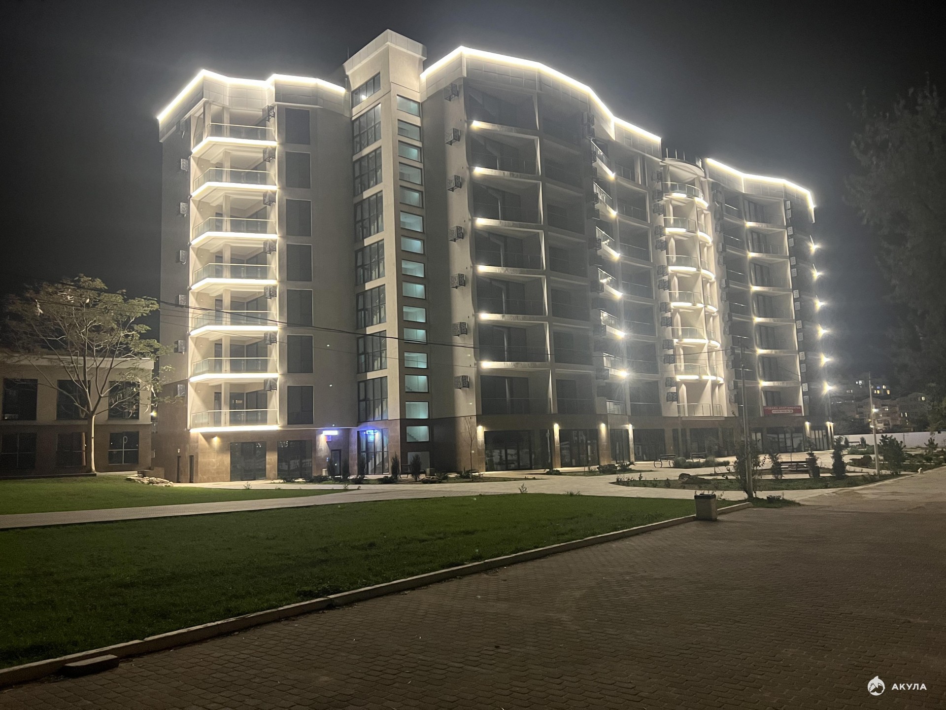 Апартаменты (квартира-студия) расположена по адресу: г. Севастополь, ул. Пляж Омега, 24, в ЖК Акватория на 5-м этаже/7-ми этажного дома.