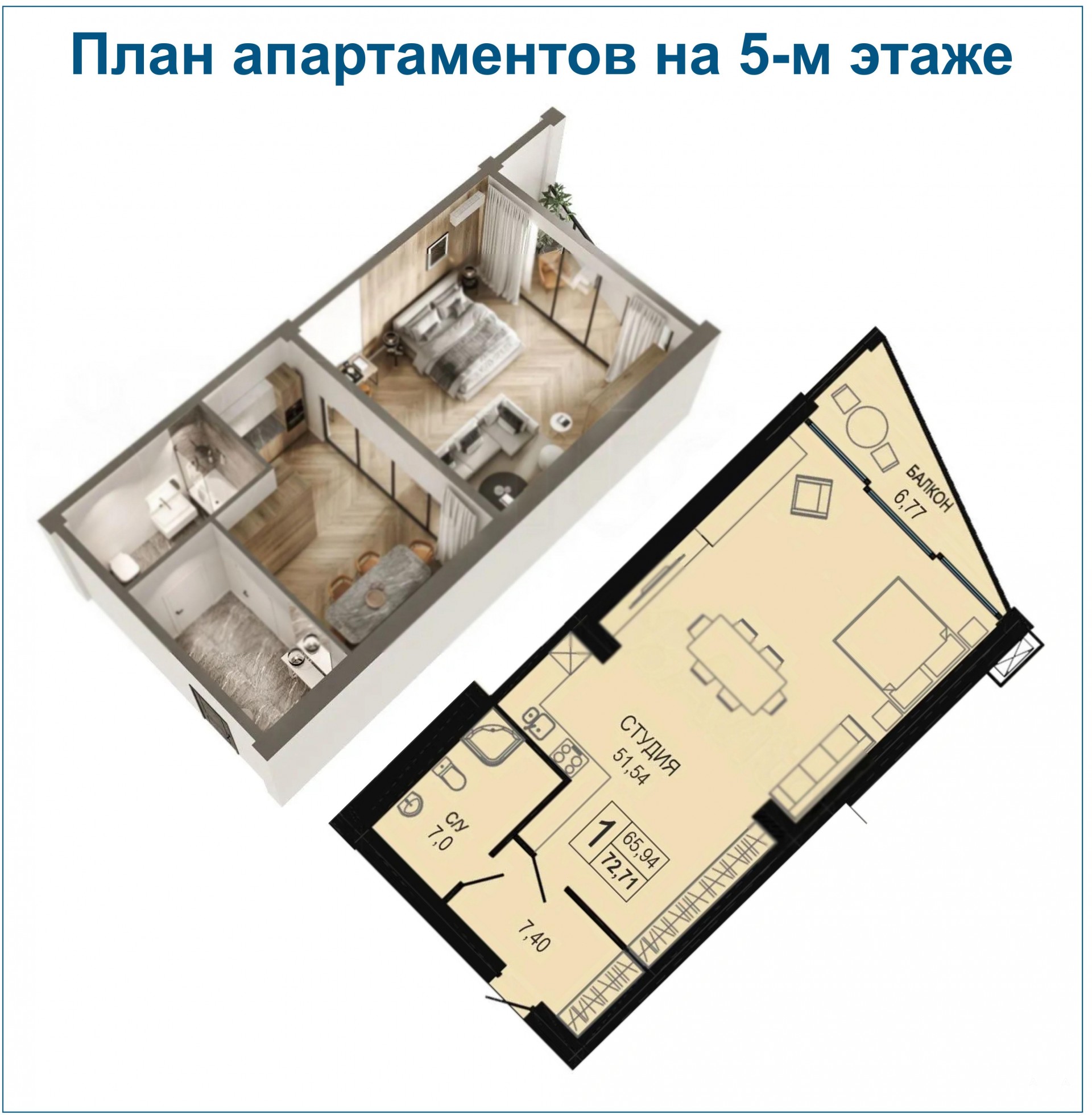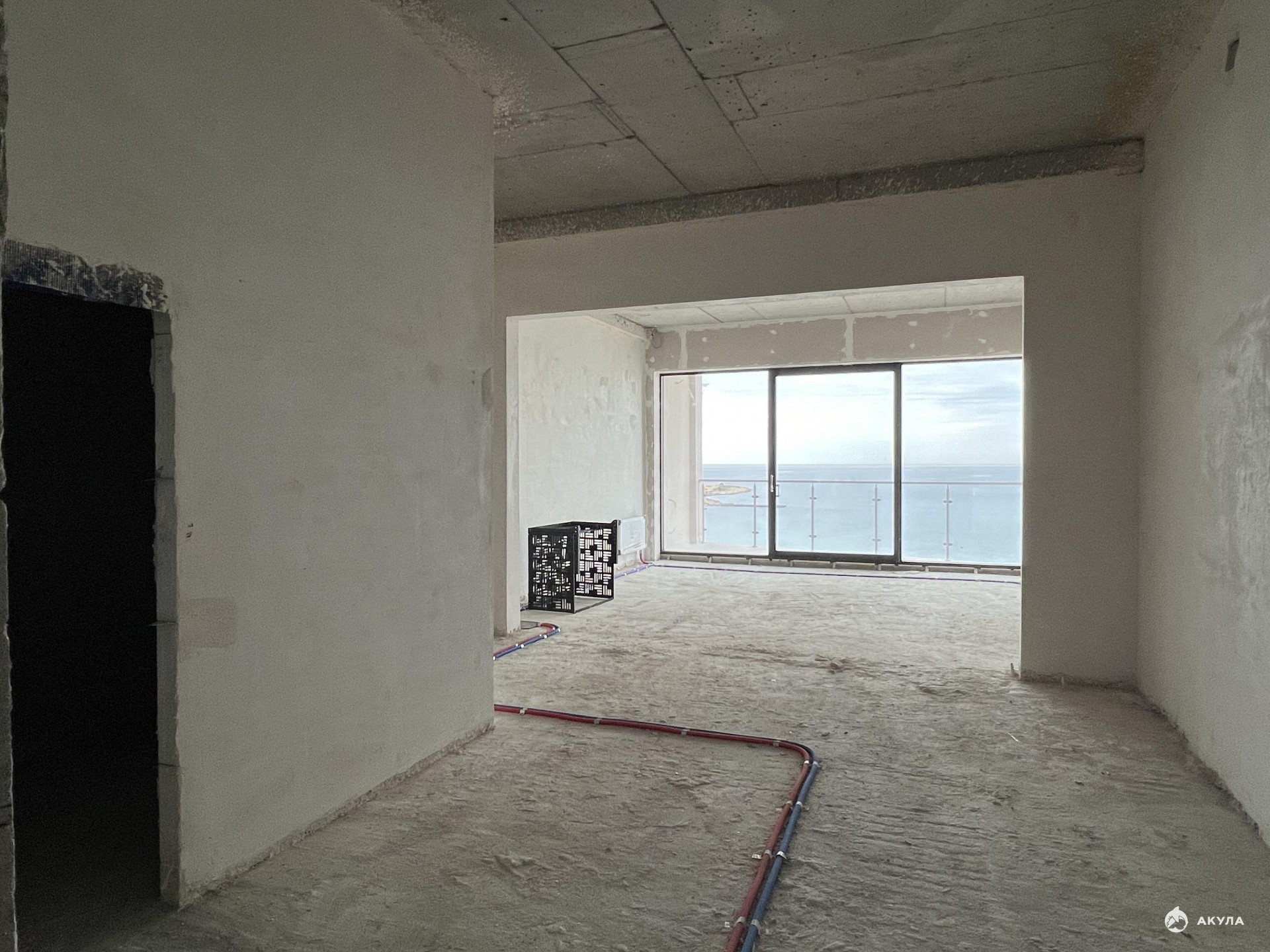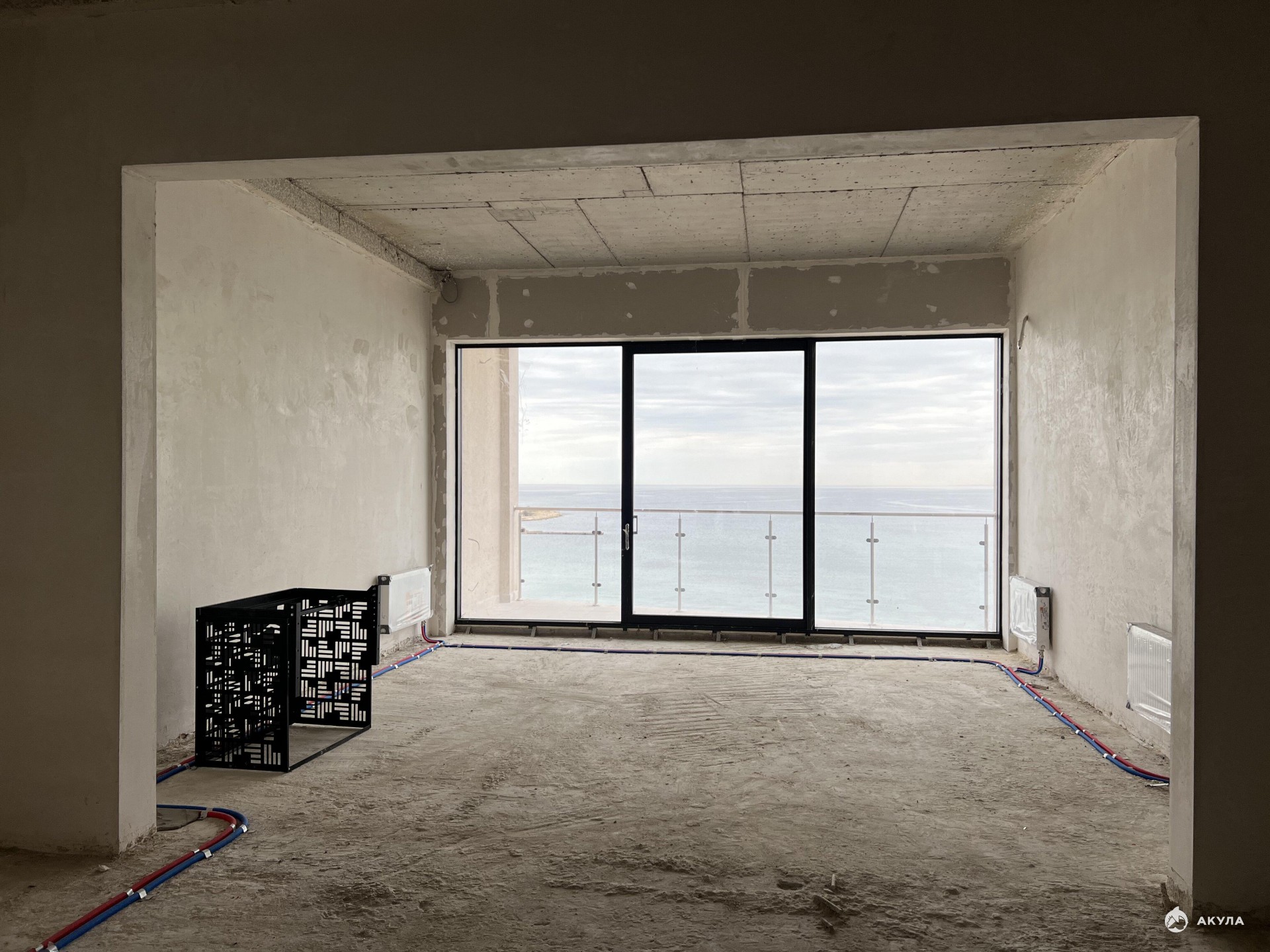 Общая площадь апартаментов 72, 4 м2, в том числе: жилая площадь 51, 5 м2, прихожая 7, 4 м2, санузел 7 м2 и балкон с видом на море 6, 8 м2. Высокие потолки 3, 6 м.
