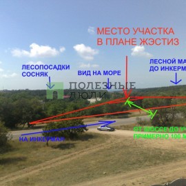 Лот №18711. Отличный ровный участок правильной формы в уединенном месте Балаклавы(1-е отделение "Золотой Балки"). С участка открывается прекрасный вид на Балаклаву, виноградники и горы. К участку подходит новая ровная дорога. Рядом находятся магазин, кафе и остановка...